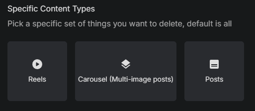 When setting up a deletion task in Redact, choose “Carousel” as the content type. This limits the cleanup to posts that include multiple photos or videos.