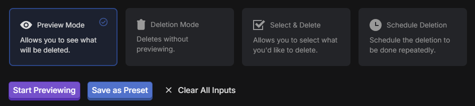 - Rule based deletion by keywords, hashtags, usernames, dates, and other metadata