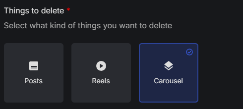 Delete all your Instagram carousel / album posts in bulk with Redact. Select the "carousels" content type, set your date range and any other filters you want, and you're ready to start deleting.