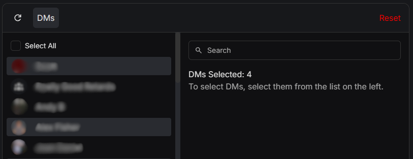 You can delete Instagram posts and DMs by specifying a date range. Redaction can be specified by Start Date (only delete after this date) or End Date (only delete before this date). You can select by month by clicking the month label, and by year by clicking the year label. Clicking the Reset red text will reset the date value for that field.