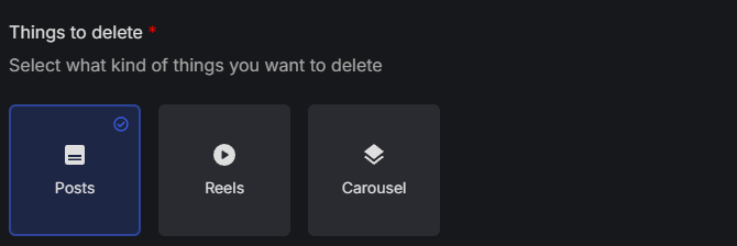Mass delete all of your Instagram posts including photos, videos, reels, and carousels. You can select all posts at once for deletion, or you can filter posts by keyword or date range.