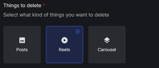 Want to mass delete all your Instagram reels? With Redact, you can wipe your Instagram Reels in bulk. Simply select the Reels content type, set your date range and any other filters you want, and start deleting.